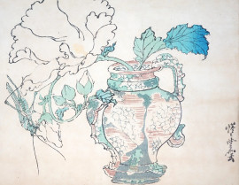Vaso di fiori, multiplo su carta, cm 20x25, Giappone, entro cornice.
