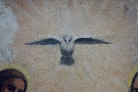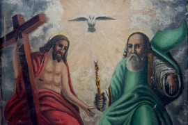 La Santissima Trinità, olio su tela, cm 29x23,5, inizi XX secolo, entro cornice, (lievi difetti).