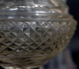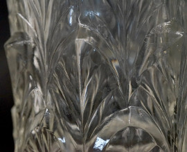 Lotto composto da cinque vasi diversi e due bottiglie in vetro e cristallo controtagliato, alt.max cm , XX secolo, (tappi delle bottiglie mancanti).