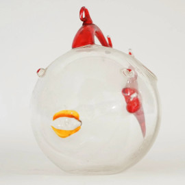 Lotto composto da due piccole sculture in vetro soffiato di Murano con particolari policromi, misure max cm 10 x 11, XX secolo.