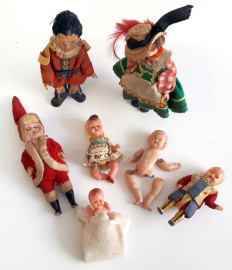 Lotto composto da sette antiche bamboline, varie dimensioni, altezza massima cm 13