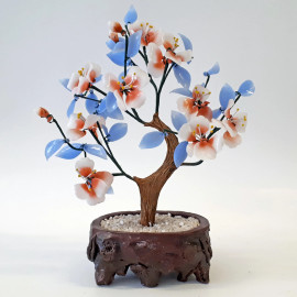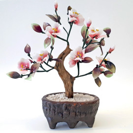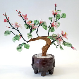 Lotto composto da tre bonsai vintage realizzati con mix di pietre dure in diverse tonalità di colore, altezza cm 35 circa ciascuno, Cina popolare XX sec.