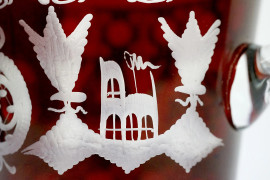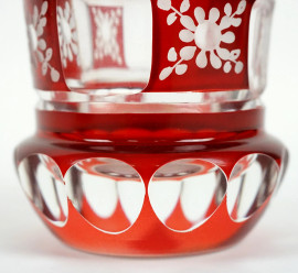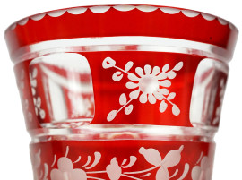 Lotto composto da un vasetto ed un portaghiaccio in vetro rosso rubino, decori molati, misure max cm 13,5x12, XX secolo.