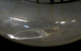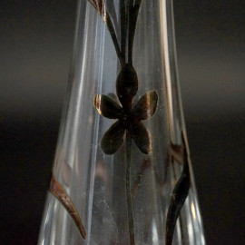 Lotto composto da un vasetto, un piccolo versatoio e due boccette porta profumo anni '20, in vetro con decori argentati, alt. max cm 7, (difetti).