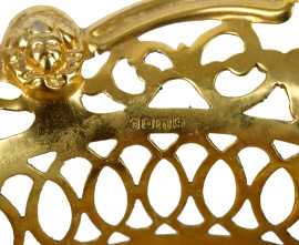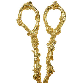 Lotto composto da una coppia di centrini traforati ed un paio di forbici da uva in metallo dorato, lunghezza max cm 18, XX secolo.