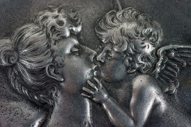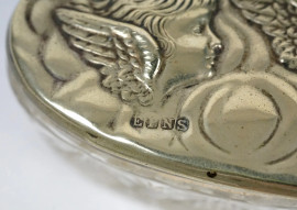 Lotto composto da una scatolina in cristallo ed una placchetta in metallo argentato con decori a rilievo, XX secolo, cm h 3,5x12x5, (difetti)