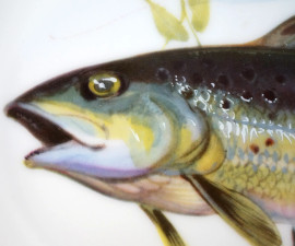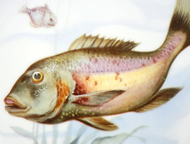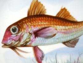 Lotto di 4 piatti da pesce in porcellana policroma, Bavaria, XX secolo, diam. cm 25,5