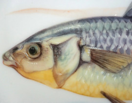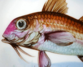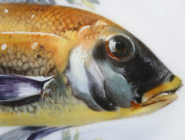 Lotto di 7 piatti da pesce in porcellana policroma, Bavaria, XX secolo, diam. cm 25,5