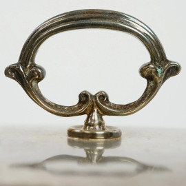 Lotto di due legumiere in metallo argentato, misure max cm 17x36x21, (difetti)