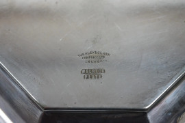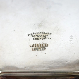 Lotto di quattro oggetti in metallo argentato, alt. max cm 26 (difetti)
