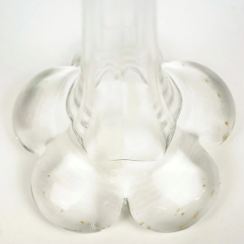 Lotto di tre vasi diversi monofiore in vetro, alt.max cm 38, XX secolo, (difetti).