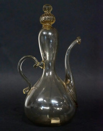 Lotto di tre vasi ed un piccolo versatoio in vetro di Murano, dimensioni e forme diverse, alt. max cm 22, XX secolo.