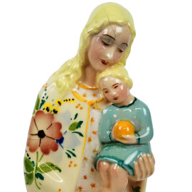 Madonna col Bambino, scultura in porcellana policroma, XX secolo, cm h 43,5, (lievi difetti, filature)