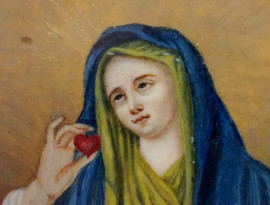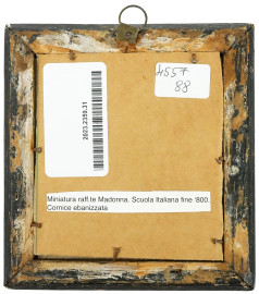 Madonna del Sacro Cuore, miniatura dipinta in policromia, cm 9,5x10,5, fine XIX secolo, entro cornice.