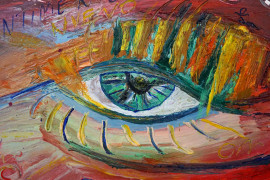 Occhio di Ra, tecnica mista su tavola, cm 36,5x44,5, entro cornice.