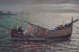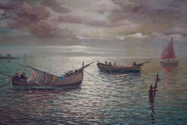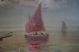 Marina, olio su tela, cm 80x150, XX secolo, entro cornice