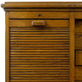 Mobile schedario da ufficio in noce con ante scorrevoli, anni '60, cm 125,5x91x45, (difetti)