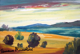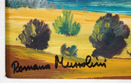 Paesaggio, olio su masonite, cm 20x30, entro cornice