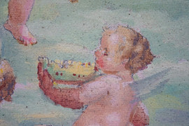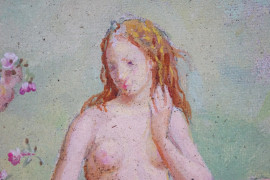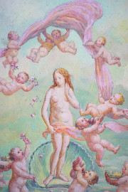 Nascita di Venere, olio su tela applicata su tavoletta, cm 32x25, XX secolo, entro cornice