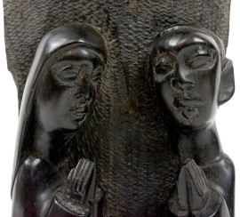 Natività, scultura in legno ebanizzato, cm h 44, arte africana, XX secolo, (difetti).