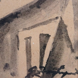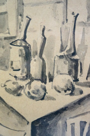 Natura morta-vasellame, tecnica mista su carta, cm 23x14,5, firmato, entro cornice.