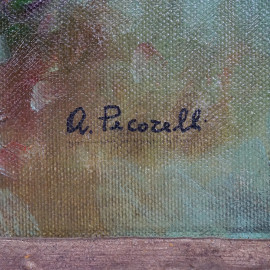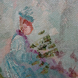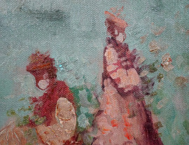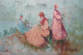 Nobildonne in riva al fiume, olio su tela, cm 30x40, firmato Pecorelli, entro cornice