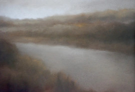 Paesaggio fluviale, pastello su carta, cm 36x42,5, firmato, entro cornice.
