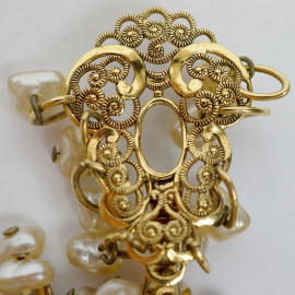 Paio di orecchini di alta bigiotteria con perla di fiume, chiusura a clip, cm 10x5,5, (segni del tempo).