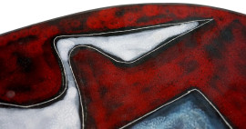 Piatto oblungo in ceramica smaltata con decoro raffigurante cavallo e cavaliere, XX secolo, cm 43x20