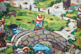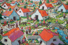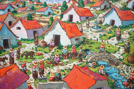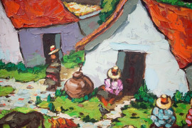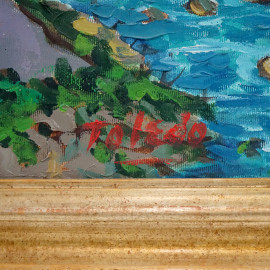 Pueblito Serrano, olio su tela, cm 80,5x100, firmato Toledo, entro cornice.