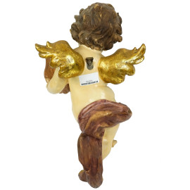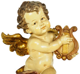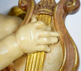 Putto musicante in ceramica policroma, XX secolo, cm 58