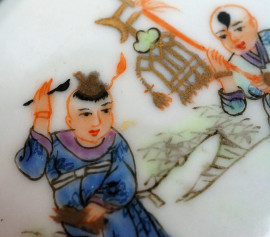 Quattro cofanetti tondi in porcellana policroma, Cina, XX secolo, diam.cm 6,5, (difetti).