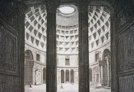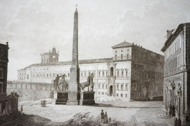 Quattro incisioni raffiguranti il Ponte Lucano, Porta Maggiore, l'Interno del Pantheon e Piazza di Montecavallo, cm 25x34,5, Archivio Carlo Erba, (difetti).