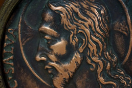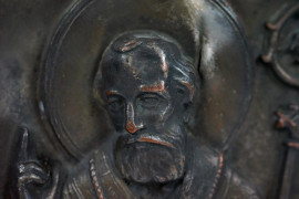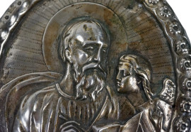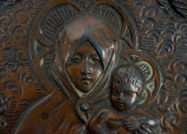 Quattro placche devozionali in rame e metallo, incise e sbalzate, misure max cm 16x15,5, XX secolo, (difetti).