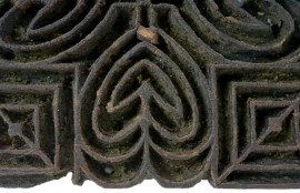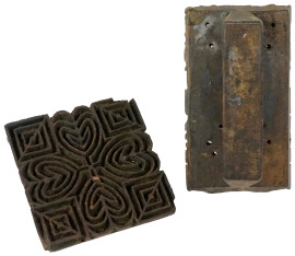 Quattro timbri per tessuti in legno con decori scolpiti a varie fantasie, misure max cm 6,5x19x11, arte orientale, XX secolo, (difetti).