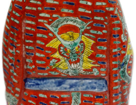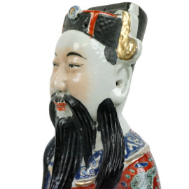 Saggio, scultura in porcellana smaltata, cm h 47,5, Cina, XX secolo, marcato sotto la base, (lievi difetti).