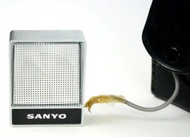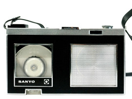 Sanyo, radiolia vintage entro custodia con cuffie, cm 17x9,5, (difetti).