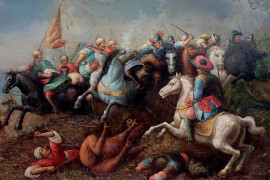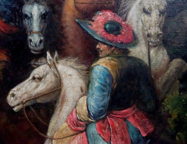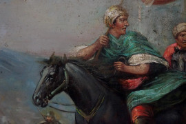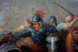 Scena di battaglia, olio su tela, cm 90x120, XX secolo, entro cornice.
