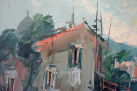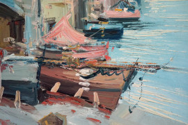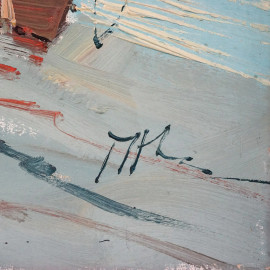 Scorcio di costa, olio su tela, cm 70x50, firmato, (lievi difetti).
