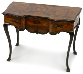Scrittoio impiallacciato in radica di noce e profili ebanizzati, inizi XX secolo