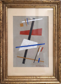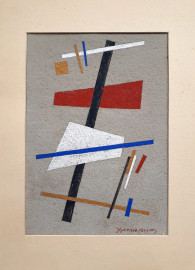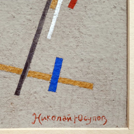 Scuola dell’Avanguardia russa, Composizione suprematista, tecnica mista su carta, cm 22x15, firmato in basso a sinistra (Nikolay Yusupov) in caratteri cirillici