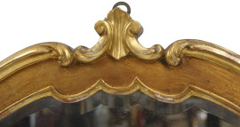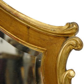 Specchiera di linea sagomata in legno dorato, metà XX secolo, cm 80x123, (difetti)