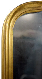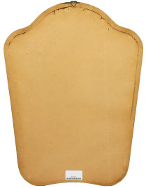 Specchiera di linea sagomata in legno intagliato e dorato, XX secolo, cm h 63,5x47,5