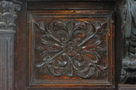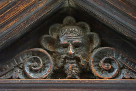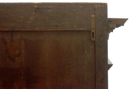 fronte con nicchia architettonica inquadrata da tiretti e sportellini, con decori di gusto rinascimentale, cm 81,5x85x41, (difetti, mancanze)