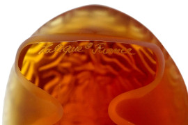 Tartaruga Lalique, XX secolo, in cristallo bicolore ambra e trasparente, firma incisa sotto la base.