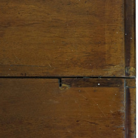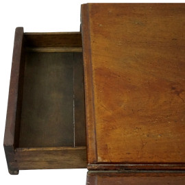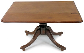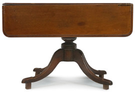Tavolo a bandelle in mogano, Inghilterra, fine XIX secolo, un cassetto nella fascia, fusto tornito poggiante su quattro gambe mosse, misure con piano aperto cm 73x108x112, (difetti)
