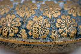 Teiera in bronzo con decori floreali a rilievo, arte orientale, XX secolo, cm h 8x14x12 ca.