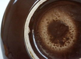 Teiera in maiolica marrone, anni '70, coperchio color arancio, cm 23x26, (piccole sbeccature).