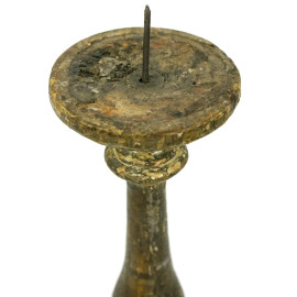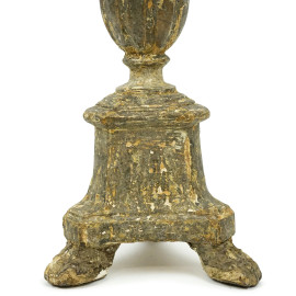 Torciere in legno dorato, base a tre piedini, XVIII secolo, cm h 35, (difetti).