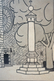 Torre, multiplo su carta, cm 37x31, firmato e datato, entro cornice